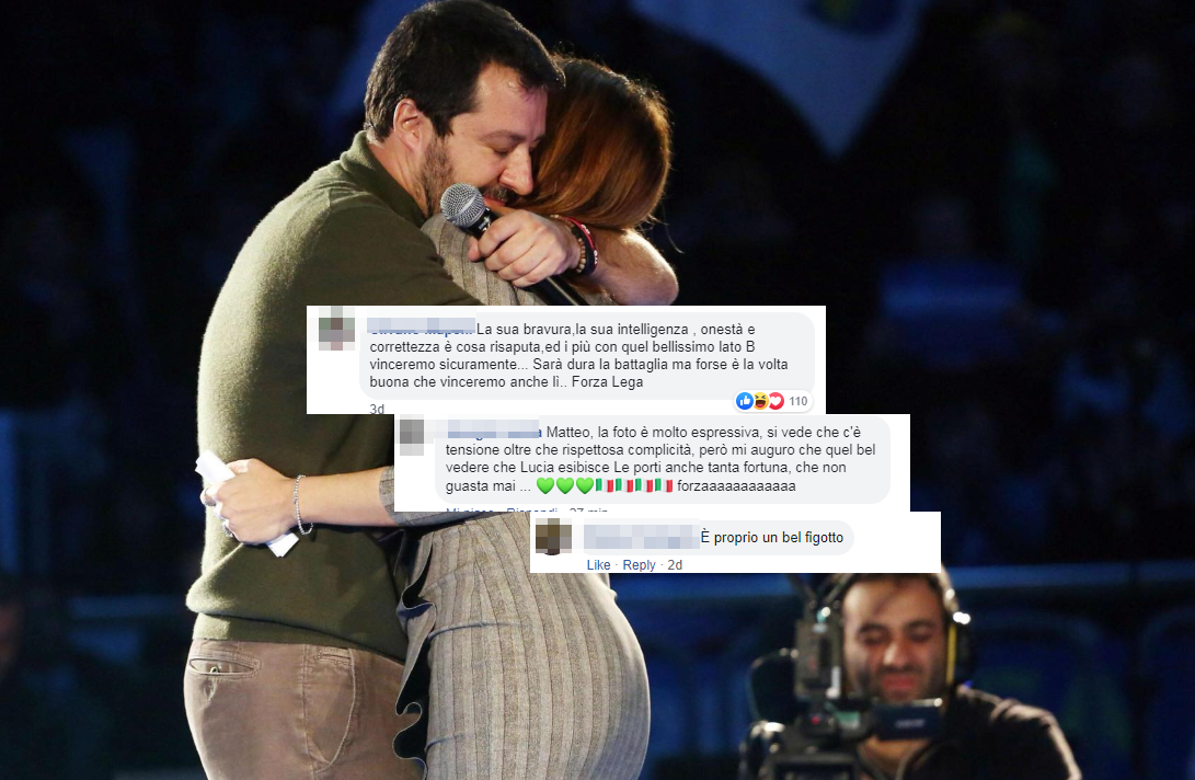 Uno dei commenti con più “mi piace” sulla pagina di Salvini mette in evidenza che grazie a quel “bellissimo lato B” vinceremo sicuramente. Un altro invece si augura che “quel bel vedere che Lucia esibisce Le porti anche tanta fortuna”.